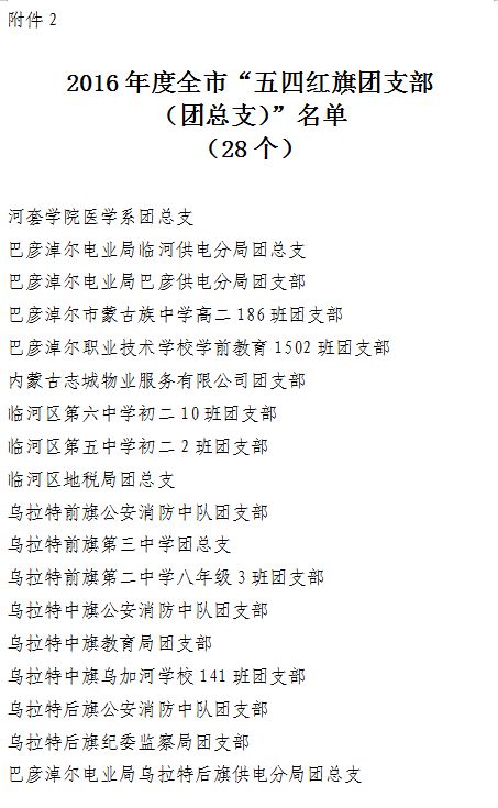 关于表彰2016年度全市“五四红旗团委(团工委、青工委)”“五四红旗团支部”的名单